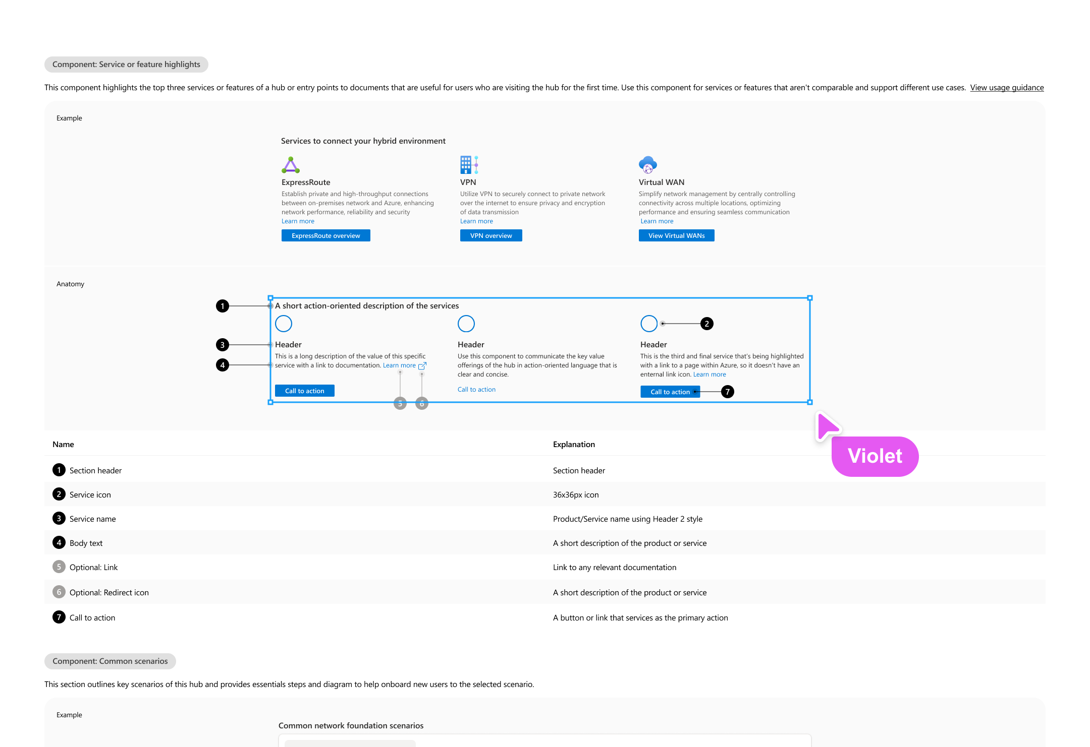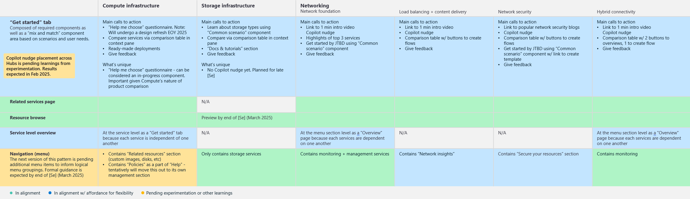 The most important aspect of writing guidance for Hubs was to clearly define where teams had flexibility and where we all needed to be consistent. Each product team had different user needs they needed to address. For example, the Compute team needed to increase the discoverability of its virtual machine scale set service, while the Networking team needed to help users understand the technical aspects of three similar offerings. So we created a “mix and match” approach to components within several of the design patterns.