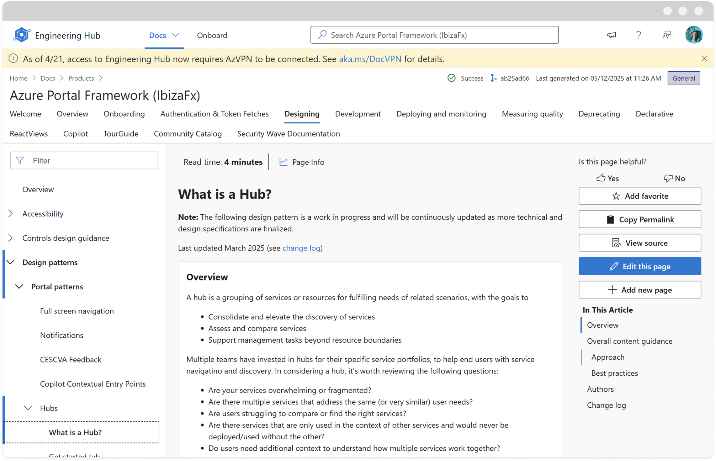 I served as the lead designer for the Azure “Hub” service patterns from Jan 2024 to May 2025. I drove alignment across emerging Hubs and produced UX guidance for new teams to adopt the Hub model.