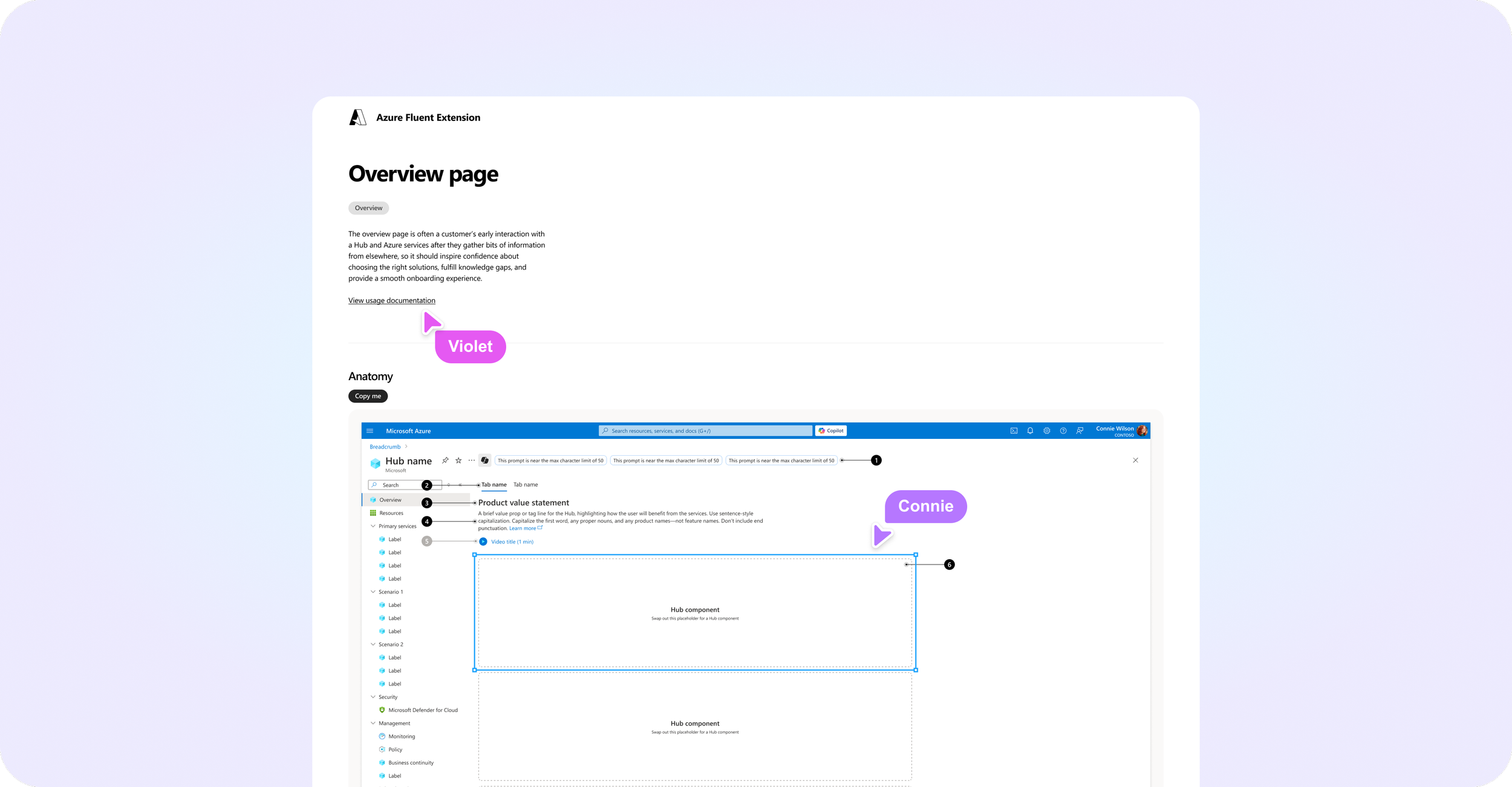 To enable consistent implementation across Azure, I led the creation of Hub design guidance. I collaborated with designers, researchers, content strategists, and PMs to document each pattern, including: