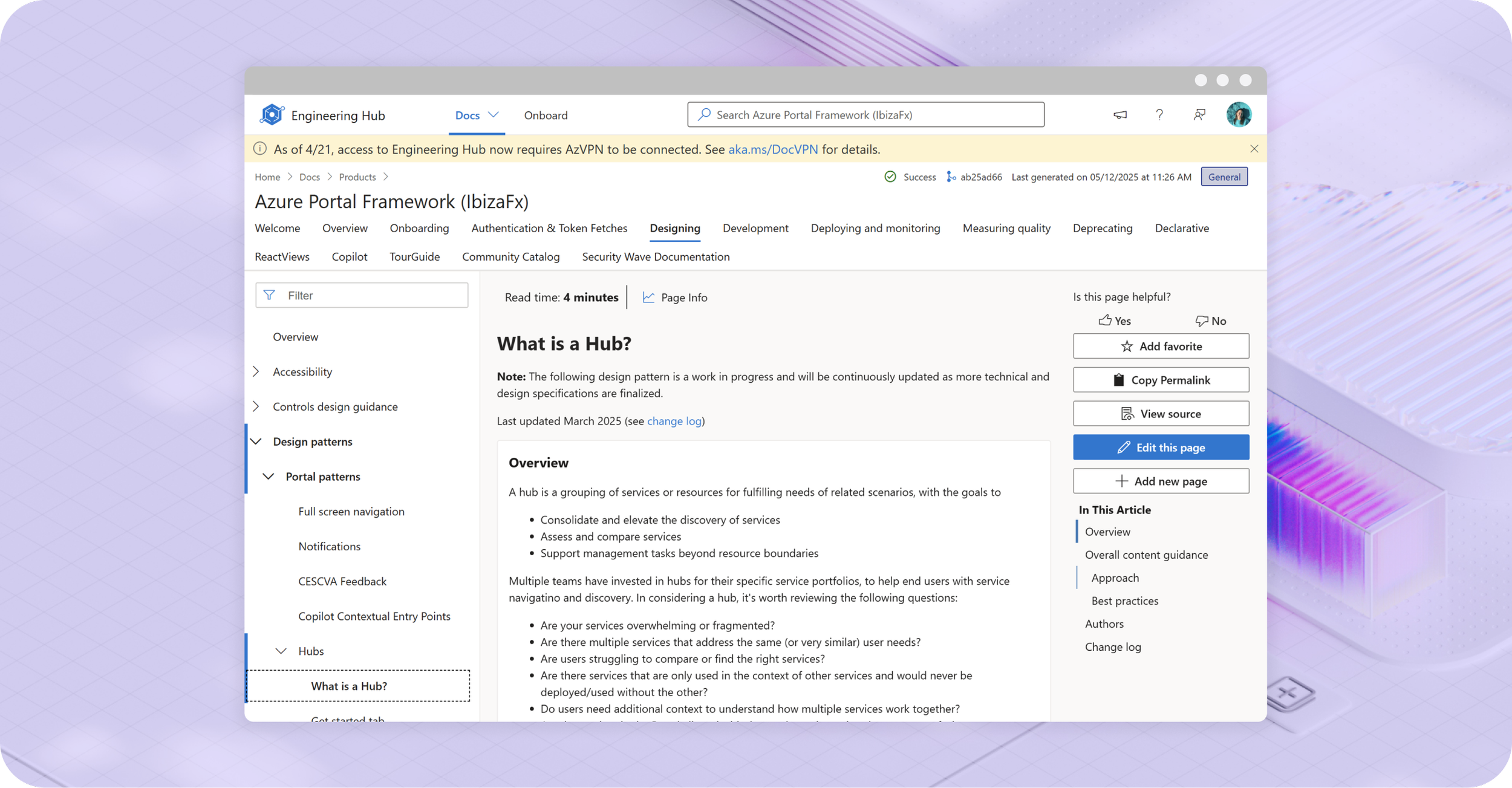 As part of the Azure Design System team, I led the UX framework for Hubs, defining scalable design patterns and guidance used by product teams across Azure.
